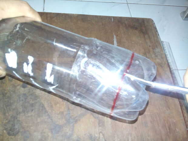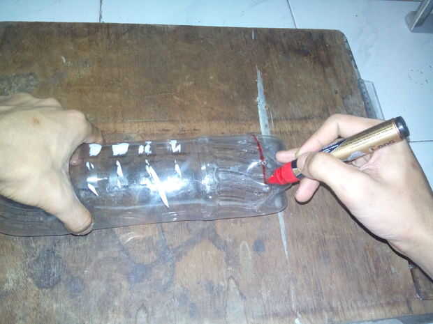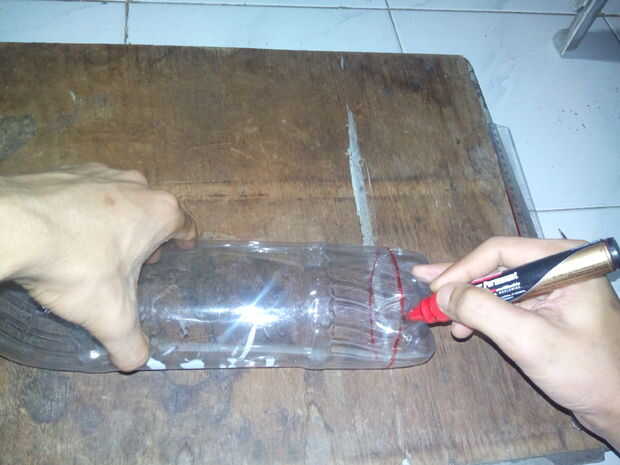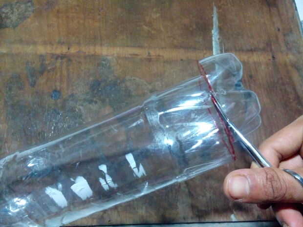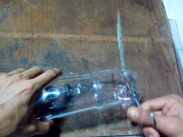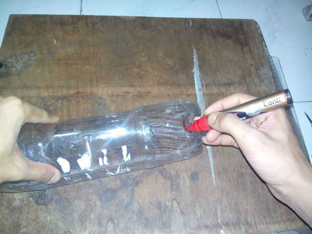 Paso 2: Realizar el marcado y corte de la parte inferior de la botella de plástico