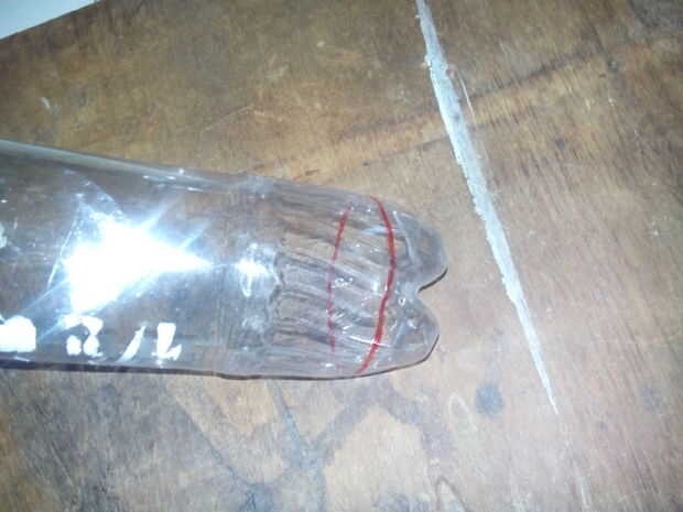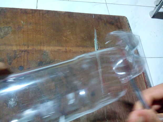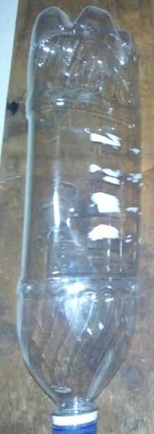 DESPUÉS DE ADQUIRIR UNA BOTELLA DE PLÁSTICO VIEJA, MARQUE UNA LÍNEA EN LA PARTE INFERIOR DE LA BOTELLA DE PLÁSTICO Y DESPUÉS DE HACER QUE, A TRAVÉS DE LA LÍNEA CON LA AYUDA DE LA TIJERA COMO SE MUESTRA EN LAS IMÁGENES ANTERIORES.