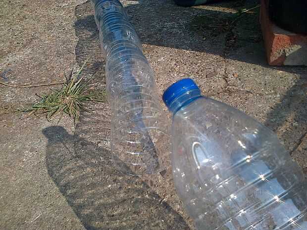 Continuar hasta que todas las botellas se enfrentan a la misma forma y juntar. Ahora para media botella con la tapa en - va en último!