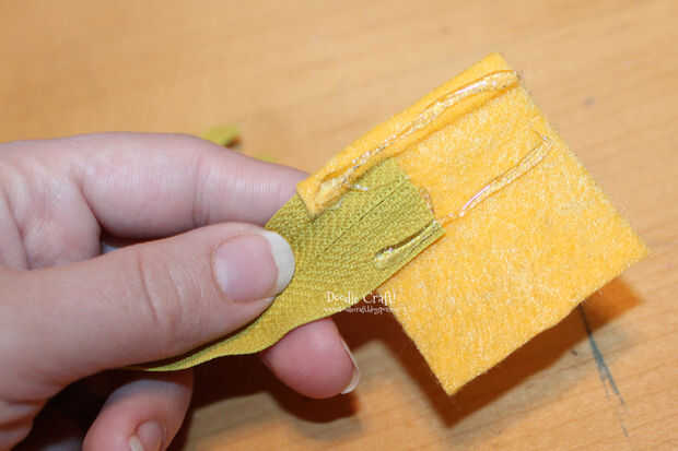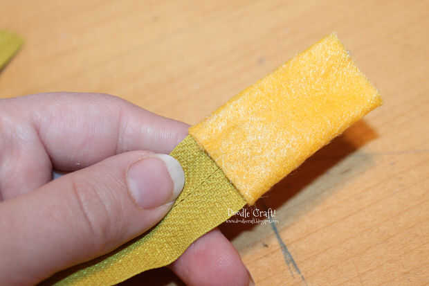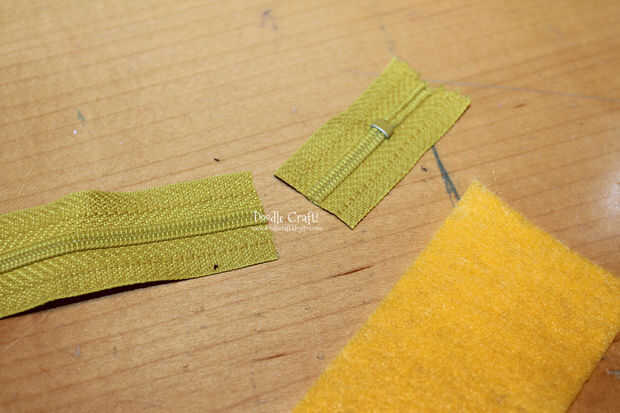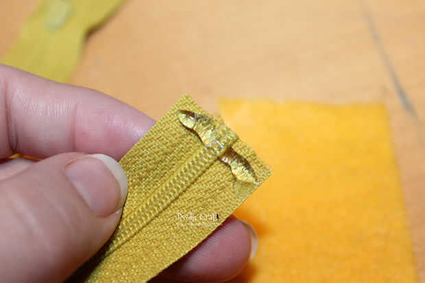 Utilice pegamento caliente y asegure un fieltro en el extremo de la cremallera.