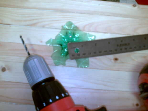 . Marque el centro y con su taladro, perfore un orificio de 1/4". Podría derretir con un alambre caliente, pero por favor tener cuidado y hacerlo en una zona muy bien ventilada.