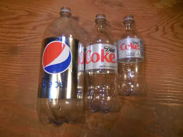 Otra marca usa botellas con diferentes formas. No tienen que ser 20 oz botellas pero mejor seguir con el mismo botellas de marca en el mismo tamaño para asegurar la uniformidad y buen ajuste. Sólo utilizas los fondos de las botellas para este proyecto.