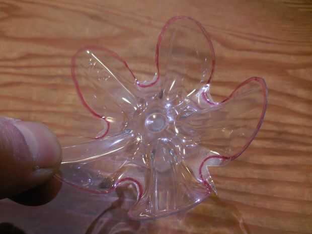 Con sharpie, marca el contorno de la flor en la parte inferior de una botella. Use el hisopo de algodón empapado en alcohol para borrar sus errores.