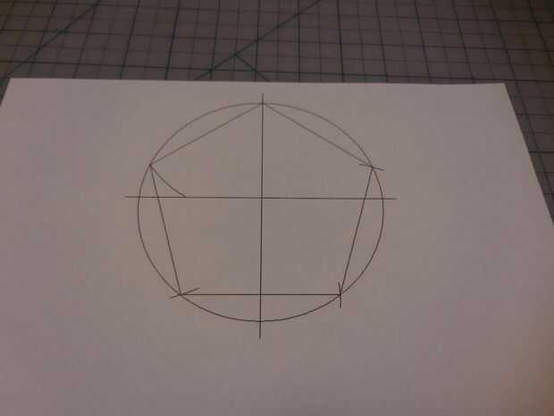 Hacer una búsqueda en google imagen para un dibujo de un Pentágono con punto central e imprimirlo. Dibuja líneas de 5 esquinas hasta el centro.