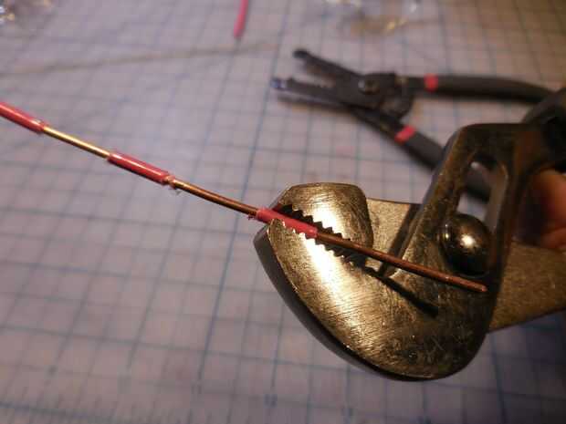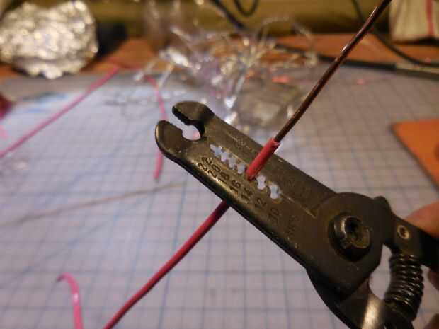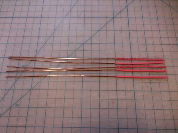 Cortar los 5 cables en la misma longitud. Retire el aislamiento poco a poco. Deja un poco del aislamiento en un lado donde estarán las piernas.