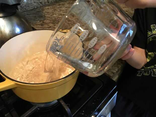 Ahora usted está listo para agregar 500 ml de agua a la olla en la estufa. No encienda el quemador aún.