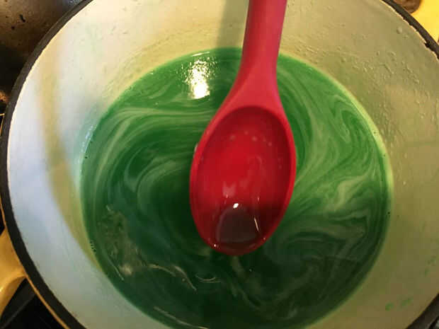 Cuando los grumos desaparecen todo está listo para verter la gelatina en la botella.