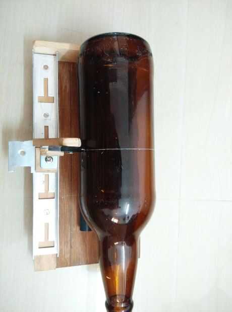 3. Coloque la botella en la plantilla y ajustar el brazo de corte