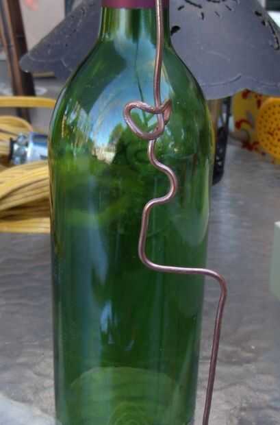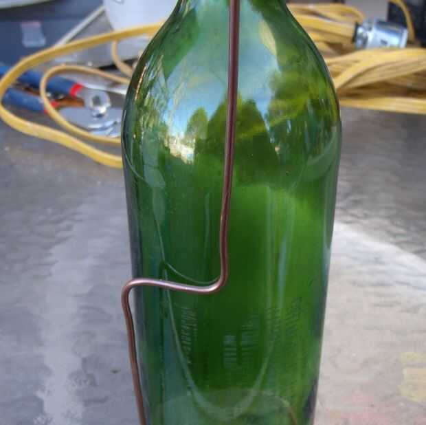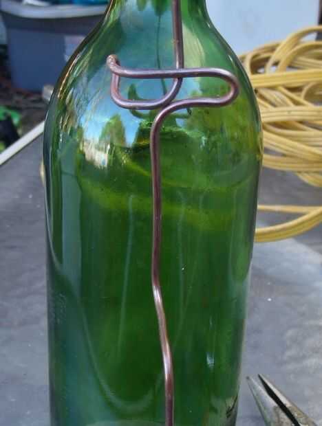 Globo ocular donde empieza el hombro de la botella y hacer un par de lazos en el cable (esto impide que el cable tirando hasta la fecha.) Pongo otra curva en el bucle del cable porque hice un poco a todo.