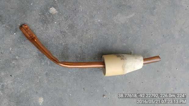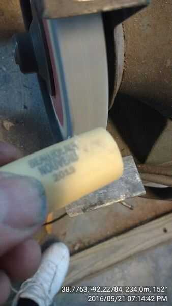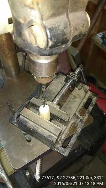 Desea que el corcho se deslicen fácilmente dentro y fuera de la botella, haciendo un cierre hermético. Bisele el extremo del corcho como se muestra con una lijadora o un esmeril. Usted podría gradualmente con un cuchillo de bolsillo, pero el borde debe ser liso y redondo lo suficiente como para hacer un aire apretado del sello en la botella. Taladre un agujero en el corcho sólo lo suficientemente grande como para forzar el tubo interior a 1/2" dentro de la botella.