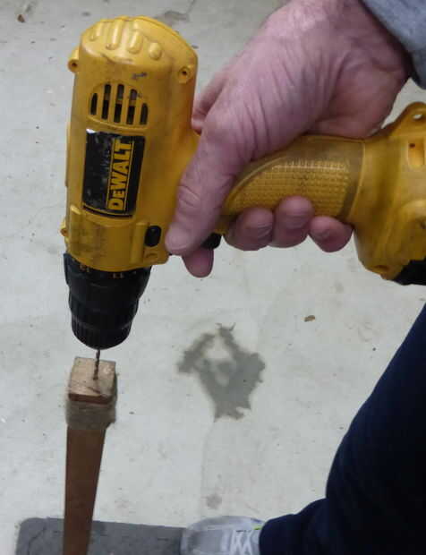 Marque el centro de cada extremo de cada extremo de los tres ejes, con la broca de 1/16, perfore un orificio de 1 ½" profundamente en todos los extremos de seis.