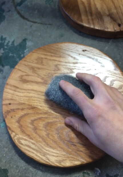 Cuando cada pieza se limpia correctamente Repita el proceso de tinción y nuevamente lije con lana de acero y luego utilizar el paño de la tachuela de nuevo.