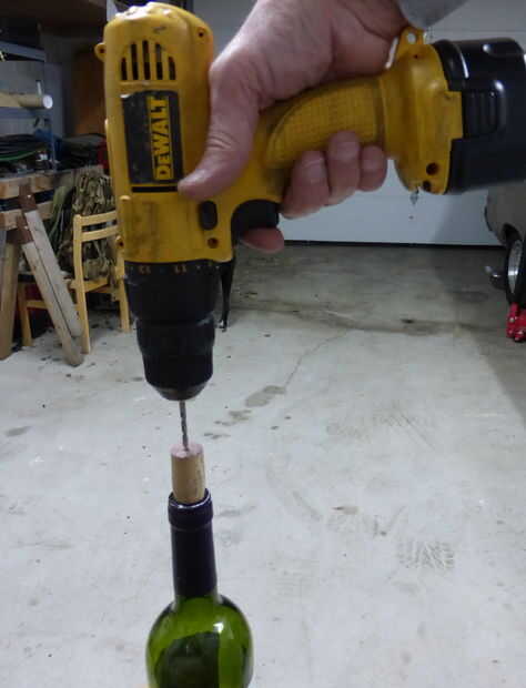 Taladro ⅛ pulgadas a través del centro del corcho de extremo a extremo.