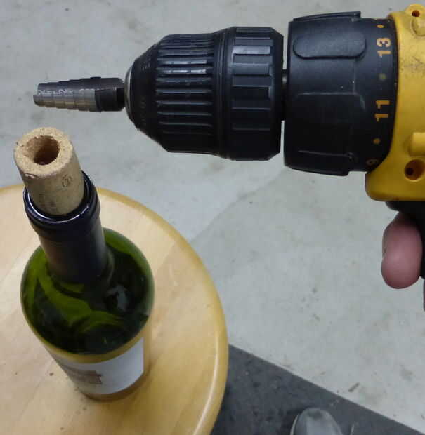 Usando el unibit, abrir un embudo cónico como área en ambos extremos del corcho.