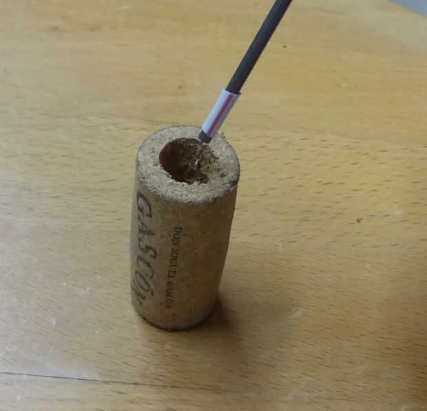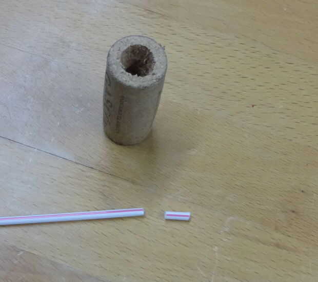 Pegar la paja en el interior de la sección de centro del corcho con el sellador de silicona.