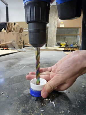 Se necesita algún tipo de pegamento y un taladro. Se utilizó una pistola de pegamento caliente, pero puede utilizar cualquier cosa que puede unir plásticos o metales juntos (dependiendo del tipo de tapa).