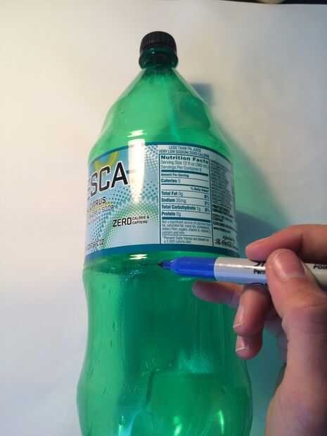 Marque una línea sobre __ pulgadas desde la parte inferior, o simplemente donde la curvatura de la botella comienza a cambiar. Usando el cuchillo, con cuidado corte una línea alrededor de la circunferencia de la botella.