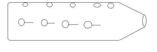 Ahora que tenía los cables en su lugar miré el arreglo y pensó que podrían hacerse fácilmente unos agujeros más para sostener algunas plumas y lápices, y así que hice unos agujeros en la parte superior del cuerpo es decir. aproximadamente perpendicular a los agujeros usados para los cables.