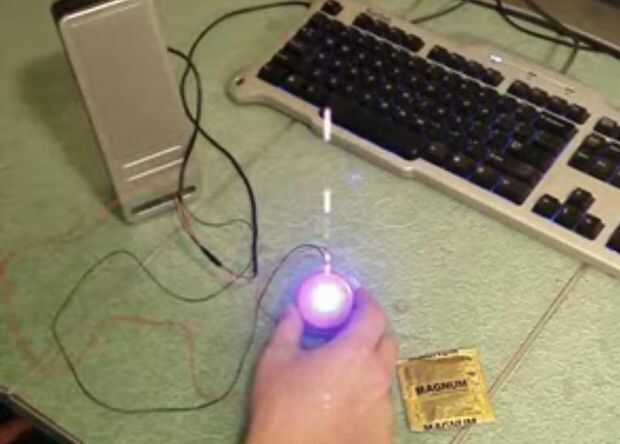Añadir algún alambre fino a la LED (yo uso un cable de teléfono viejo) y conectar los cables a los cables de altavoz. Esto sólo funciona en altavoces amplificados o altavoces que enchufe en la pared.