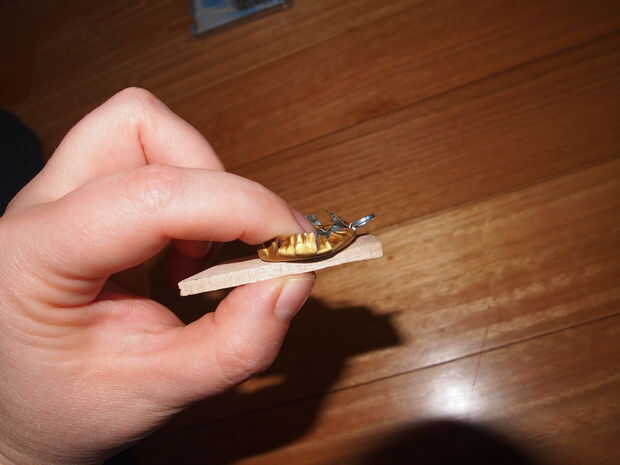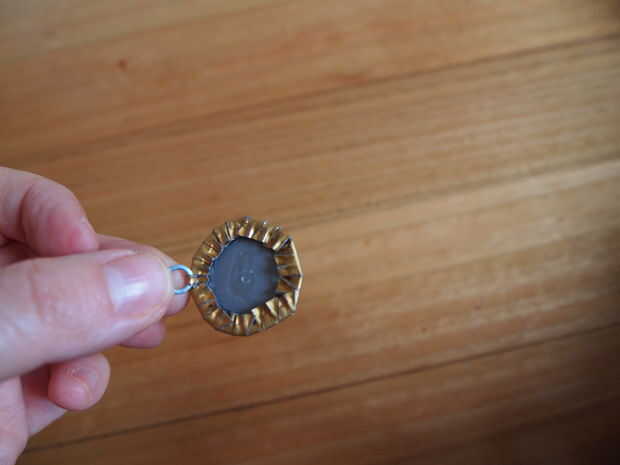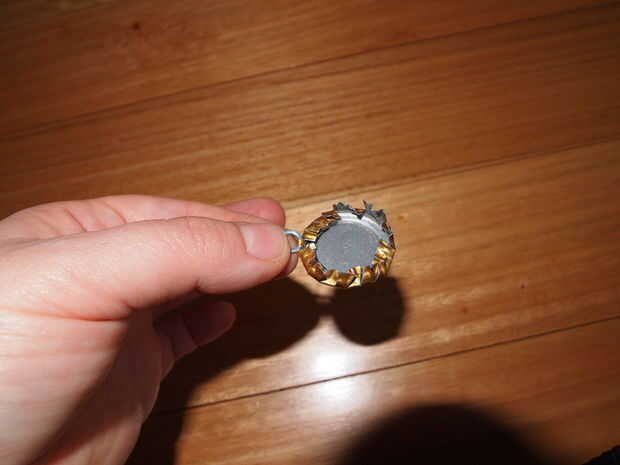 Ahora, con la almohadilla de madera gruesa de cartón y plástico a la cara de la tapa de la botella, utilizar los alicates para doblar hacia abajo de las secciones, pulse plano en la parte inferior. Ser cuidadosamente para presionar realmente cualquier bordes filosos por lo que no capturan la piel o la tela más tarde!
