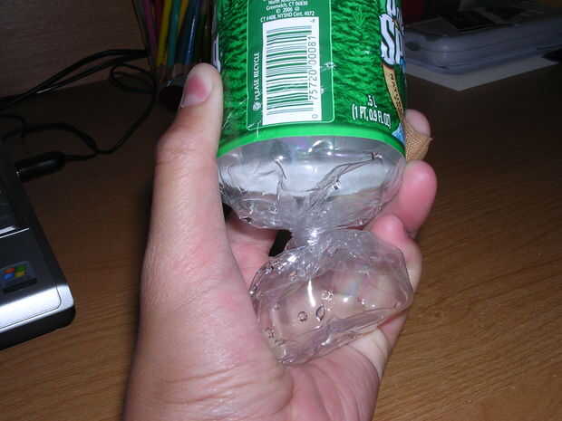 este es un truco muy fácil para hacer con una botella de agua vacía. Gire la botella tanto como puede, sostenga con una mano y luego usar el pulgar para rápidamente gire la tapa. La tapa debe volar y a presión vapor de agua se salen de la botella. Un