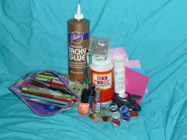 Crea una flor de tapas de botellas y lo convirtió en un juego de jardín decorativo.Paso 1: materialesPrimero junté mis materiales. He utilizado tapones de botellas (yo usé 20 en mina), una tapa de lata, palillos y pegamento (iniciado con pegamento pe