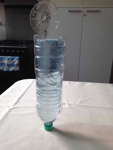 Verifique que la botella pequeña cabe en la botella grande, por lo que queda de 1 cm en el diámetro. Este 1 centímetro entre botellas se utilizará para cubrir la espuma de poliuretano.