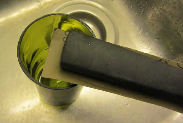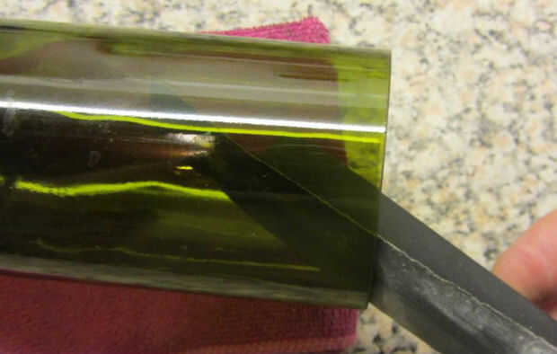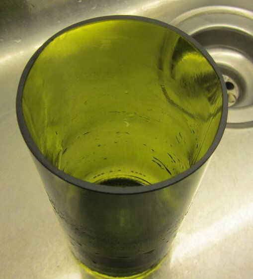 No es la única manera de terminar los bordes de las botellas. Si tuviera una ruptura solía usar oxiacetilénico antorcha para fundir los bordes pero es un arte ya que se necesita calentar toda la pieza de vidrio por lo que no hay fracturas por estrés. Horno/horno de porcelana es muy buena.