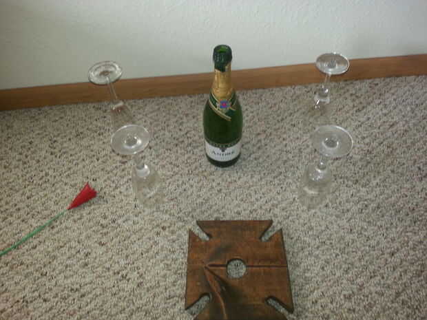 Botella y vasos porta vino (1 / 3 paso)