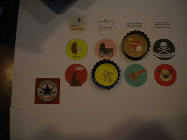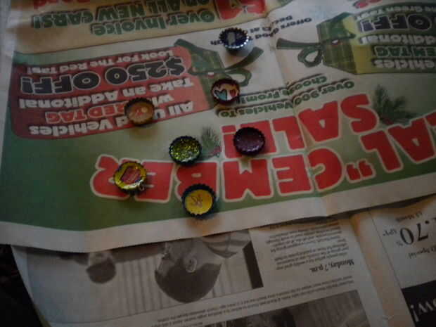 pensé cápsulas haría imanes muy bien, pero la pregunta era qué poner entre la parte posterior de la tapa y el imán... Es donde la arcilla. Hacía también algunas damas de la tapa de botella y tenía algunos arcilla restos de eso, así que sólo usé lo qu