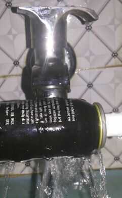 Tenemos que hacer un pequeño agujero en la botella mediante un pequeño clavo y un martillo. Llene la botella de agua a través del agujero y cerrarlo con el tornillo... Bien hecho