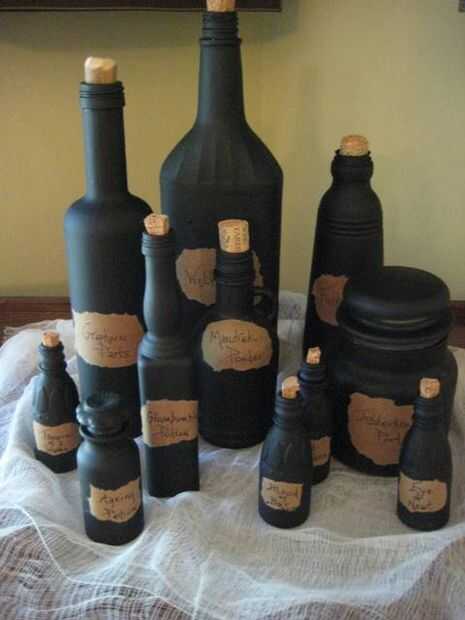 estas son algunas de las botellas de la poción que utilizo para decorar para Halloween. Hacía de envases de vidrio decorados con arcilla polimérica, pintura, canicas de vidrio plano, corchos, sellos de goma, cáscaras de huevo, hilo, cuentas, papel y