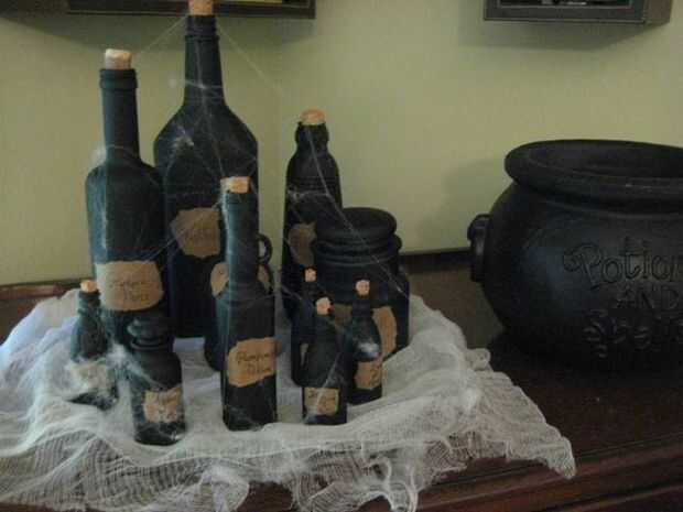 Fácil como de botellas de la poción de la bruja!Se necesita:-Botellas de vidrio.-Colorante.-Pintura acrílico blanca.-Pincel.-Brillo opcional.-Sangre de vampiro opcional. (usted puede conseguirlos en Wal-Mart durante los días de fiesta.)Paso 1: agua!