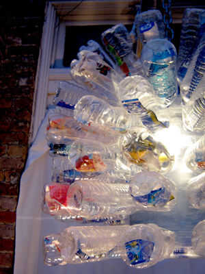 Stand de dulces utilizando botellas de plástico repurposed