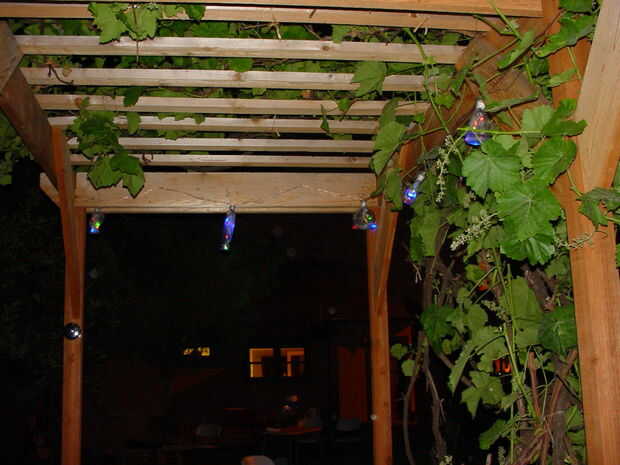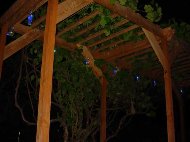 En algún momento después construí mi pasarela accionado Solar, mi hermano y su familia llegó para una visita. Todos parecían muy impresionados con las luces, especialmente su esposa. Ted acababa de construir un masivo de gran tamaño arbor uva de la vid gigantesca que ha sido debidas a su patio trasero durante los últimos años, y Michelle le preguntó si ella podría tener un sistema de luces para poner bajo el árbol. Pensé que esto era una gran idea y les dije que si se paga por los materiales estaría feliz de construir algo para ellos.