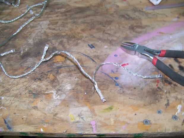Antes de comenzar poniendo las luces en las botellas, cortar varias tiras de cable de altavoz de tres pies de largo. La medida no tiene que ser exacto como todos los hilos están sobre la misma longitud. Tira de 1/2" de aislamiento de cada extremo.