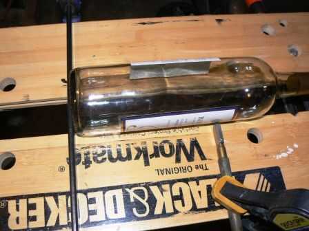 Coloque la otra abrazadera en la parte posterior de la botella. Utilizar una abrazadera de nylon largo 3' más grande para este paso ya que se pega para arriba un poco más arriba de mis pies una y hace un buen respaldo para la botella de vino. O sujetar un palo de 2 x 2 de madera allí.