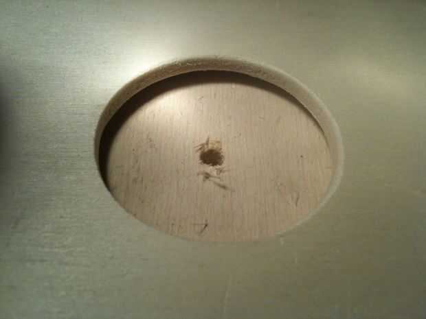 Ya que las botellas miden 36mm de diámetro, utilicé una broca 38mm agujero Sierra. Los pequeños agujeros para los LEDs en el paso 2 me ayudaron a perforar en el lugar correcto.