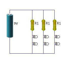 Simplemente conecté a 3 parejas de LEDs (con un resistor) en paralelo.