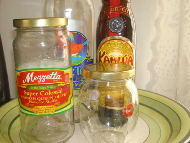 Guarde la cinta roja y el plástico de la K de la vacía botella de Kahlua.