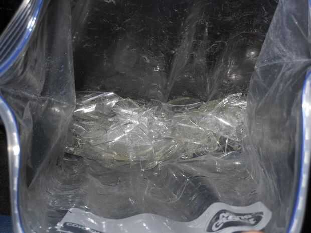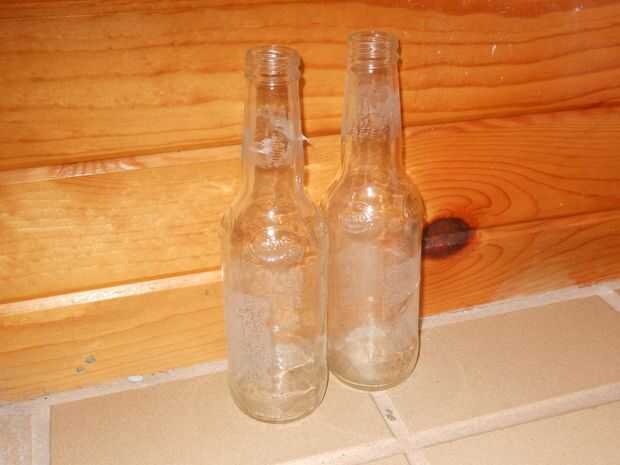 Quitar las etiquetas y el contenido de las botellas y luego romperlas. Tomar precauciones para no obtener cortes. Envuelve el vidrio en bolsas de plástico y el corte a través de él por lo que recomiendo utilizar un enfoque diferente.