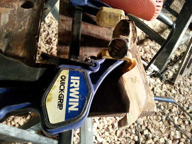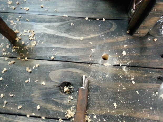 Para conectar las clavijas del ferrocarril, utilice una broca Forstner que es apenas más grande que el peg. Tratar de conseguir como apriete un ajuste como sea posible. Perforar todo el camino a través de los tableros traseros y añadir algunos pegamento una vez que las clavijas estén en.