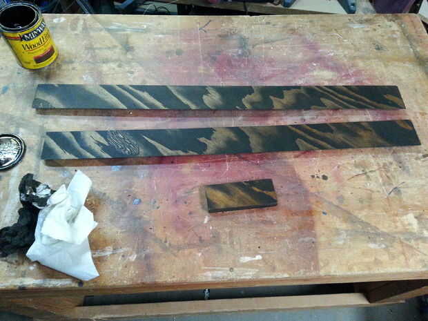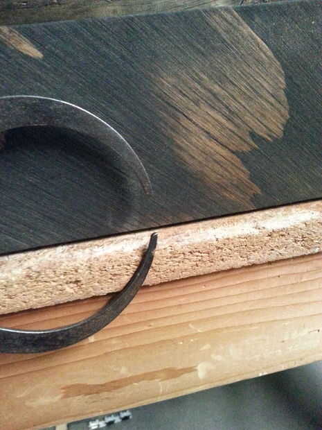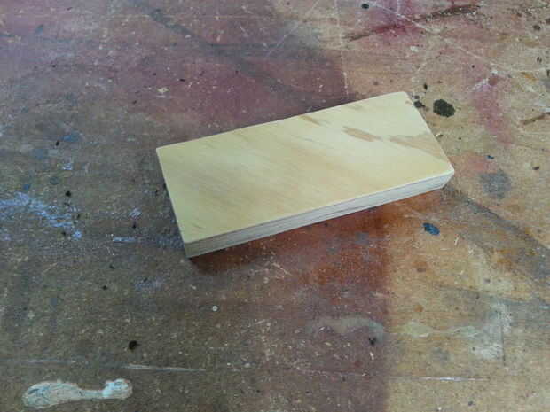 Usted también necesitará un pequeño espaciador para sostener la parte inferior de los botelleros de la pared. Usé uno de los trozos sobrantes de la Cala francés.