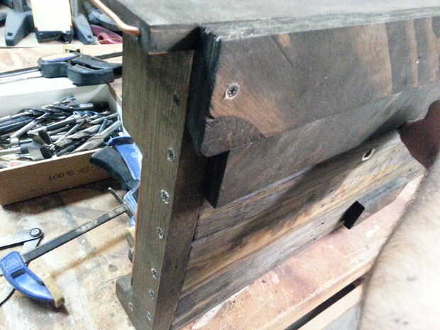 En cuanto a colocar la parte superior de la Cala del francés, usé cinco tornillos de 1.25" abajo de su longitud para asegurarlo a la parte superior de la parrilla vino.