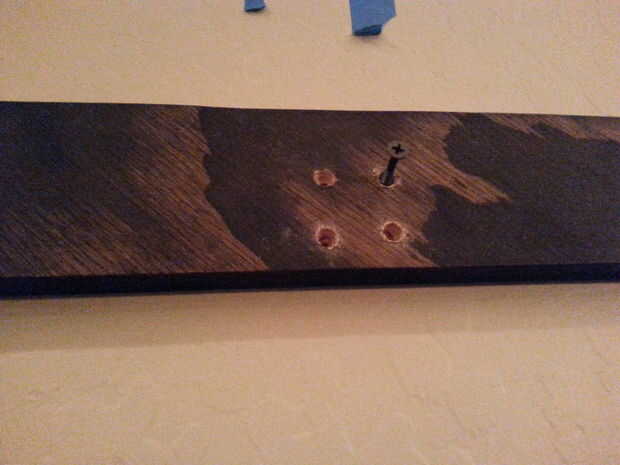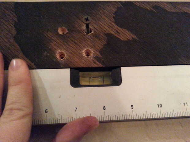 Para la porción que irá en la pared, encontré que el iba a ser y todos los agujeros de la pared con la broca de avellanar agujeros. Había cuatro tornillos alineados con el perno para la fuerza y dos a cada lado para la estabilidad. Cuando coloque la parte inferior de la Cala francés en la pared, asegúrese de que esté nivelada.