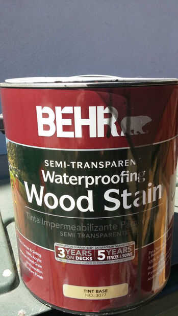 (1) galón de mancha (hemos utilizado Behr semitransparente, cordobán marrón (ST-104) Total ~$36.98