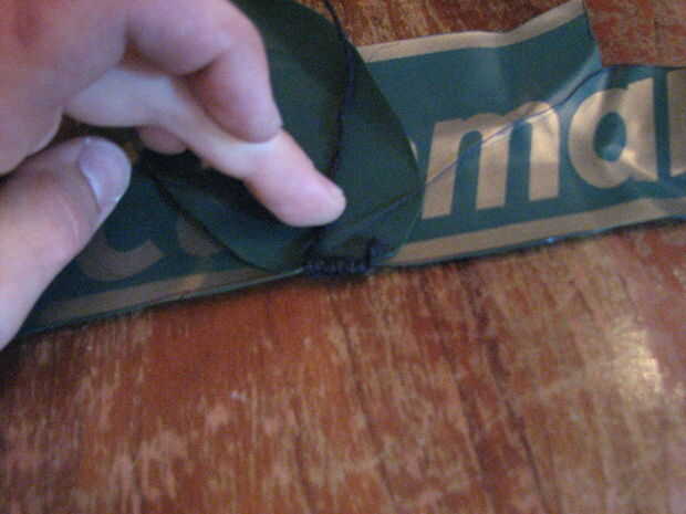 Utilicé una combinación de vinilo, cordeles de cáñamo e hilo sintético de fuerza industrial. Después de haber hecho joyería del cáñamo sé que la fibra se hincha cuando está mojado. Además, la mayoría sintéticos se hincha cuando están húmedas. Por lo tanto, supuse que funcionaría el mismo principio.