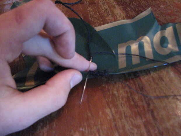 Aunque había sustituido los materiales había utilizado una costura impermeable tradicional de Alaska. Esta puntada se utiliza para coser bolsos y botas con el sello ocultaran, la hierba y los tendones. El concepto general es que la yerba se hincha cuando esté húmedo, pero los tendones no. La hinchazón dibuja los dos pedazos de material muy junto y la tensión de superficie evita la penetración de la humedad adicional.