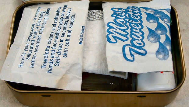 en mi kit de bolsillo med que tomo en todo el mundo, he aprendido más en su lata Altoids caben si pones todos los productos de papel-como en la parte inferior como lo hice. También se utiliza ese gran papel que vino con mi Altoids para envolver alred