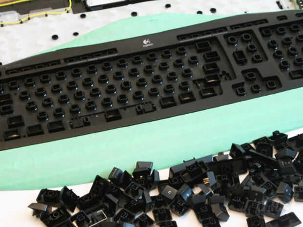 Retire la placa de circuito y cualquier otra cosa que no es la claves o componentes eléctricos.